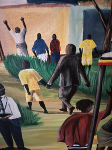 The group wanted to do a nice “Thank You” so they commissioned an artist they met at a nearby craft market. They knew I had a favorite recent photo of Scott at the last Prison Project and they gave that to the artist as a center piece for a depiction of our work that week.