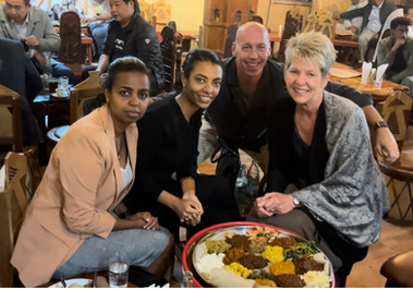Scott doesn't like tourist destinations. He'll eat locally and I'd be surprised if he ever took a cruise - too organized by someone else. But a true highlight of our trip to Addis Ababa (the capital city) was a lovely dinner with two woman who are part of the team who are tasked with deciding if they will work with Pepperdine.