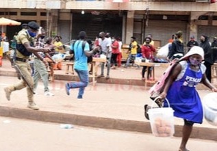 In downtown Kampala, vendors arrived to work at their small businesses Saturday morning only to be driven away by riot police. Some vendors have decided to sleep in their stalls. They are asking the government to supply mosquito nets to prevent malaria as they live away from their families for the next 6 weeks, trying to earn a living.